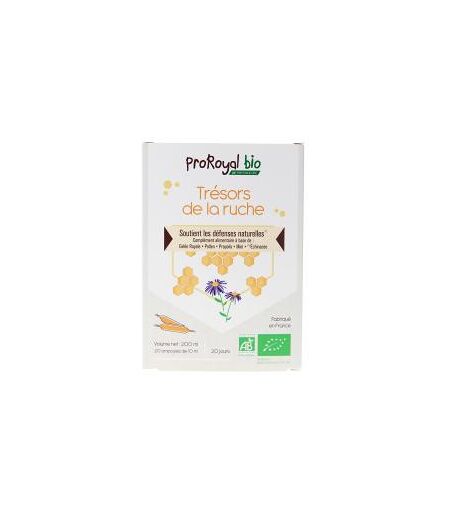 Phytoceutic ProRoyal Défenses de la Ruche Bio 20 Ampoules de 10 ml est un complément alimentaire associant les 4 ingrédients de la ruche (miel, pollen, propolis et gelée royale) auxquels s'ajoute ...