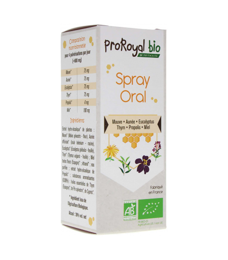 Explorez les trésors de la ruche avec PROROYAL BIO, un spray oral naturel des LABORATOIRES PHYTOCEUTIC. Forts de plus de 30 ans d'expertise en compléments alimentaires bio, ces laboratoires ont créé une formule unique, alliant propolis, mauve, aunée officinale, eucalyptus et thym pour le bien-être de toute la famille. La propolis, bouclier naturel de la ruche, contribue au bien-être oral. Associée à l'aunée officinale, reconnue pour ses propriétés calmantes et toniques sur les voies respiratoires, elle offre une synergie d'effets bénéfiques. La mauve, aux propriétés adoucissantes, apaise les maux de gorge, tandis que l'eucalyptus et le thym aident à dégager les voies respiratoires. Utilisé depuis des millénaires, PROROYAL BIO incarne la tradition associée à l'expertise moderne des LABORATOIRES PHYTOCEUTIC. Ce spray oral naturel offre un concentré de bienfaits pour l'organisme, agissant comme un soutien naturel pour le bien-être oral et respiratoire de toute la famille. ...