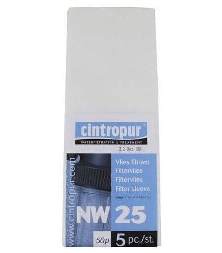 Lot de 5 manchons filtrants de remplacement pour filtre Cintropur NW25 Filtration jusqu'à 50 microns. Pour une utilisation optimale de votre filtre, il est conseillé de le remplacer tous les 6 à 12 mois en fonction du niveau d'encrassement de celui-ci. Dimensions à plat : 28 (L) X 10.7 (l) cm Livré sans armature. ...
