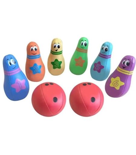 STAMP Pack Bowling 6 Quilles 2 Boules - Set de Bowling avec 6 quilles et deux balles en mousse. Cuir synthétique rembourré en mousse pour un jeu en toute sécurité. Jouabilité intérieur / extérieur. Apprentissage de l'équilibre, repérage dans l'espace, compter. Quilles 14 cm. ... ...