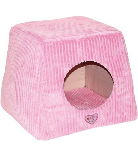 Deux possibilité de couchage en cube ou corbeille, très pratique selon les envies de votre chien ou chat: extérieur et fond intérieur polaire rose dessous antidérapant 100% polyester lavable à 30° sans essorage Dimension: 45 x 38 x 34 cm ...