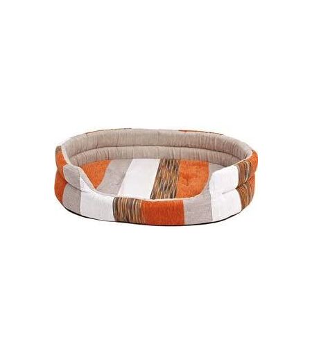 Corbeille orangette antidérapant avec coussin amovible le tout au léger touché velouté pour le plaisir de votre chien ou chat: coussin amovible lavable à 30° sans essorage. Dimension: L. 56 x l. 40 x h. 10 cm. Coloris: orange, blanc et gris clair. ...