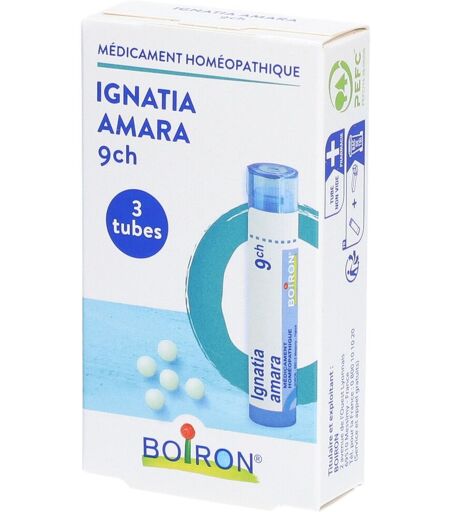 Granules homéopathiques à base d’Ignatia amara en dilution 9CH. Présentés en boîte de 3 tubes-dose de 4 g chacun. À administrer par voie orale.BénéficesMédicament homéopathique sans indication thérapeutiqueDilution 9CH couramment utilisée3 tubes-dose de 4 gPrise simple : fond sous la langueFabriqué par Boiron, FranceIndicationEnregistrement sans indication thérapeutique. Consulter un professionnel de santé si les symptômes persistent.Ingrédients actifsIgnatia amara 9CHCompositionIgnatia amara 9CH, saccharose, lactose.Mode d'emploiAdultes : laisser fondre les granules sous la langue.Enfants < 6 ans : dissoudre dans un peu d’eau. Voie orale. Lire la notice avant usage.Précautions d'emploiContient du lactose et du saccharose. Code d’enregistrement EH00574. Tenir hors de la portée des enfants. ...