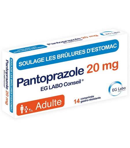 PANTOPRAZOLE EG LABO Conseil 20 mg, comprimé gastro-résistant est indiqué dans le traitement à court terme des symptômes du reflux gastro-œsophagien (par exemple pyrosis, régurgitation acide) chez l'adulte.BénéficesInhibiteur de la pompe à protons (IPP) pour le traitement du reflux gastro-œsophagien.Soulage les brûlures d’estomac et régurgitations acides.Effet progressif, amélioration visible en 1 à 3 jours.À avaler entier avec de l’eau, sans croquer ni écraser.Ne doit pas être utilisé plus de 4 semaines sans avis médical.IndicationTraitement à court terme des brûlures d'estomac et régurgitations acides.Destiné uniquement aux adultes.Effets secondairesFréquents : Maux de tête, diarrhée, constipation, nausées, douleurs abdominales.Peu fréquents : Vertiges, troubles du sommeil, sécheresse buccale, éruption cutanée.Rares : Réactions allergiques sévères, troubles hépatiques, fracture osseuse en cas d'utilisation prolongée.Très rares : Syndrome de Stevens-Johnson, insuffisance rénale, lupus érythémateux cutané subaigu.Arrêter immédiatement et consulter un médecin en cas de :Gonflement du visage, des lèvres, de la gorge ou difficultés à respirer.Apparition de cloques sur la peau ou détérioration rapide de l’état général.Présence de sang dans les vomissements ou selles.Ingrédients actifsPantoprazole (sous forme de pantoprazole sodique sesquihydraté) : 20 mg.CompositionPantoprazole (sous forme de pantoprazole sodique sesquihydraté).......................................... 20 mgPour un comprimé gastro-résistant.Excipients à effet notoire : chaque comprimé contient 38,425 mg de maltitol et 0,345 mg de lécithine de soja (dérivée de l'huile de soja).Mode d'emploiPosologieLa dose recommandée est de 20 mg de pantoprazole (un comprimé) par jour.La prise des comprimés pendant 2 ou 3 jours consécutifs peut être nécessaire pour l'obtention d'une amélioration des symptômes. Une fois les symptômes complètement disparus, le traitement doit être arrêté. La durée du traitement ne doit pas excéder 4 semaines sans avis médical.En cas de persistance des symptômes après 2 semaines de traitement continu, le patient doit consulter un médecin.Précautions d'emploiConservation : À température ambiante (≤ 25°C). Durée de conservation : Plaquettes : 5 ans. Flacon : 5 ans (à utiliser sous 3 mois après ouverture). Mises en garde & précautions : Ne pas utiliser chez les enfants et adolescents de moins de 18 ans. Consulter un médecin en cas de : Perte de poids inexpliquée, anémie, vomissements fréquents ou sanglants. Antécédents d'ulcère gastrique ou de chirurgie digestive. Jaunisse ou maladie hépatique. Symptômes persistants après 2 semaines de traitement. Attention aux interactions avec : Médicaments anticoagulants (warfarine, phenprocoumone). Anti-VIH (atazanavir, nelfinavir). Méthotrexate (augmentation possible de sa toxicité). À arrêter 5 jours avant un test de Chromogranine A (CgA) pour éviter les interférences avec les résultats. Interactions médicamenteuses : Précaution... ...