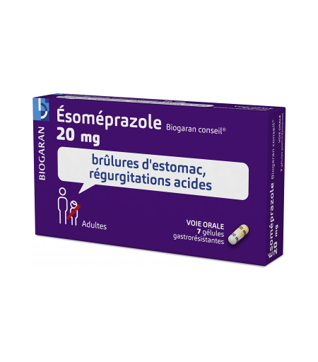 Médicament > Médicament digestion et nausées > Médicaments brûlures d'estomac Esoméprazole 20 mg Biogaran Conseil x7 - Acidité et reflux - Pharmacie en ligne LaSante.net