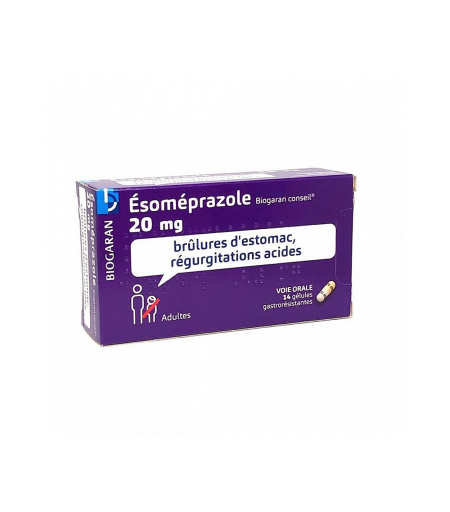 Médicament > Médicament digestion et nausées > Médicaments brûlures d'estomac Esoméprazole Biogaran 20 mg x 14 - Acidité et reflux - Pharmacie en ligne LaSante.net