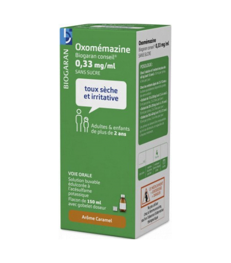 Médicament > Maux de gorge et toux > Médicaments toux > Médicaments toux sèche Oxomémazine Biogaran Conseil 0,33 mg/ml Sirop Sans Sucre 150 ml - Toux sèche - Pharmacie en ligne LaSante.net