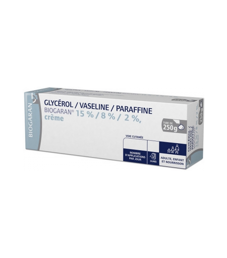 Médicament > Médicaments Dermatologiques > Médicaments irritations cutanées Glycérol, Vaseline, Paraffine Biogaran Crème 250 g - Irritations cutanées - Pharmacie en ligne LaSante.net