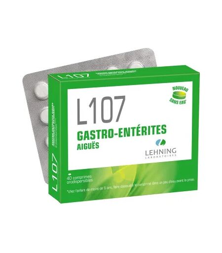 Lehning L107, comprimé orodispersible est un médicament homéopathique traditionnellement utilisé dans le traitement adjuvant des gastro-entérites aiguës. Ne prenez jamais L107, comprimé orodispersible :Chez l'enfant de moins de 30 mois.Si vous êtes allergique (hypersensible) aux substances actives ou à l'un des autres composants contenus dans ce médicament. Chez l'enfant le diagnostic, l'initiation et le suivi du traitement d'une gastro-entérite aiguë doivent être assurés par le médecin.L'utilisation de ce médicament est déconseillée chez les patients présentant une intolérance au galactose, un déficit en lactase de Lapp ou un syndrome de malabsorption du glucose et du galactose (maladies héréditaires rares). Informez votre médecin ou pharmacien si vous prenez, avez récemment pris ou pourriez prendre tout autre médicament. En l'absence de données expérimentales et cliniques, et par mesure de précaution, l'utilisation de ce médicament est à éviter pendant la grossesse et l'allaitement. Adultes : 1 comprimé après chaque selle liquide, espacer selon amélioration (maximum 6 comprimés par jour) Enfants à partir de 30 mois, sur avis médical uniquement : 1 comprimé après chaque selle liquide, espacer selon amélioration (maximum 3 comprimés par jour) Réserver à l'adulte et à l'enfant de plus de 30 mois En l'absence d'amélioration dans les 48 heures, consultez un médecin. Mode d'administration :Laisser fondre le comprimé sous la langue, de préférence en dehors des repas. Chez l'enfant de moins de 6 ans, faire dissoudre le comprimé dans un peu d'eau avant la prise en raison du risque de fausse route.Voie sublinguale. Durée du traitement :Le traitement ne devra pas excéder 5 jours. Si vous avez pris plus de L107, comprimé orodispersible que vous n'auriez du, consultez immédiatement votre médecin ou votre pharmacien.Si vous oubliez de prendre L107, comprimé orodispersible, ne prenez pas de dose double pour compenser la dose que vous avez oublié de prendre. Arsenicum album 6 DH 3.125 mgBelladonna 3 DH 3.125 mgChamomilla vulgaris 9 DH 3.125 mgChina rubra 3 DH 3.125 mgColocynthis 4 DH 3.125 mgIpeca 4 DH 3.125 mgMercurius corrosivus 6 DH 3.125 mgNux vomica 4 DH 3.125 mgPour un comprimé orodispersible de 250mg ...
