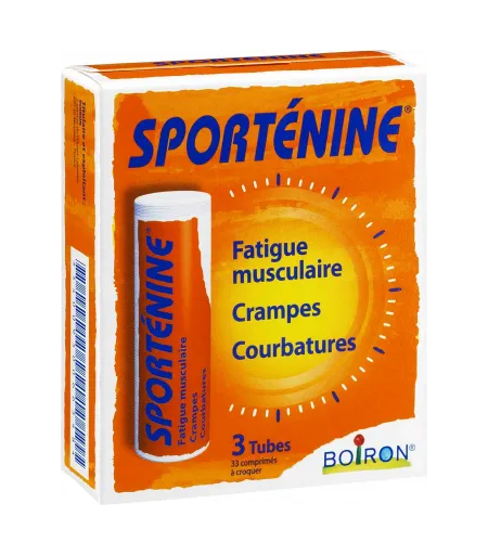 SPORTENINE, comprimé à croquer est un médicament homéopathique traditionnellement utilisé en cas de crampes, courbatures, fatigue musculaire, lors d'efforts sportifs ou surmenage physique. N'utilisez jamais SPORTENINE, comprimé à croquer:Chez l'enfant de moins de 6 ans en raison du risque de fausse route lié à la forme pharmaceutique.En cas d'allergie à l'un des composants de ce médicament Faites attention avec SPORTENINE, comprimé à croquer:Précautions d'emploiSi votre médecin vous a informé(e) d'une intolérance à certains sucres, contactez -le avant de prendre ce médicament.Ce médicament contient 1,6 g de glucose par comprimé. Ceci doit être pris en compte chez les patients souffrant de diabète sucré.Ce médicament peut être dangereux pour les dents. Prise ou utilisation d'autres médicamentsSi vous prenez ou avez pris récemment un autre médicament, y compris un médicament obtenu sans ordonnance, parlez-en à votre médecin ou à votre pharmacien. Aliments et boissonsPrendre les comprimés à distance des repas. GrossesseDemandez conseil à votre médecin ou à votre pharmacien avant de prendre tout médicament.AllaitementDemandez conseil à votre médecin ou à votre pharmacien avant de prendre tout médicament. Liste des excipients à effet notoire:glucose, lactose. Instructions pour un bon usageSPORTENINE, comprimé à croquer est d'autant plus efficace que vous l'accompagnez d'une bonne hygiène de vie et de mesures préventives. Ainsi les échauffements avant et les étirements après vos entraînements contribuent à une meilleure préparation et récupération.Posologie, Mode et/ou voie(s) d'administration, Fréquence d'administration et Durée du traitementPosologie· Avant l'effort musculaire: 1 comprimé à croquer la veille ou juste avant l'épreuve.· Pendant l'effort musculaire: 1 comprimé à croquer toutes les heures.· Après l'effort musculaire: 1 comprimé à croquer, à renouveler toutes les heures jusqu'à amélioration.Ne pas dépasser 10 comprimés par jour.Mode d'administrationVoie orale. Si vous avez pris plus de SPORTENINE, comprimé à croquer que vous n'auriez dû:Consultez immédiatement votre médecin ou votre pharmacien. Si vous oubliez de prendre SPORTENINE, comprimé à croquer:Ne prenez pas de dose double pour compenser la dose que vous avez oublié de prendre. Comme tous les médicaments, SPORTENINE, comprimé à croquer est susceptible d'avoir des effets indésirables, bien que tout le monde n'y soit pas sujet.Si vous remarquez des effets indésirables non mentionnés dans cette notice, ou si certains effets indésirables deviennent graves, veuillez en informer votre médecin ou votre pharmacien. Tenir hors de la portée et de la vue des enfantsDate de péremptionNe pas utiliser SPORTENINE, comprimé à croquer après la date de péremption mentionnée sur la boîte.Conditions de conservationIl n'y a pas de précautions particulières de conservationSi nécessaire, mises en garde contre certains signes visibles de détériorationLes médicaments ne doivent pas être jetés au tout à... ...