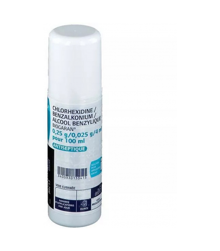 Médicament > Médicaments de premiers soins > Médicament antiseptique Chlorhexidine Benzalkonium Alcool Benzylique Biogaran Spray 100 ml - Antiseptiques - Pharmacie en ligne LaSante.net