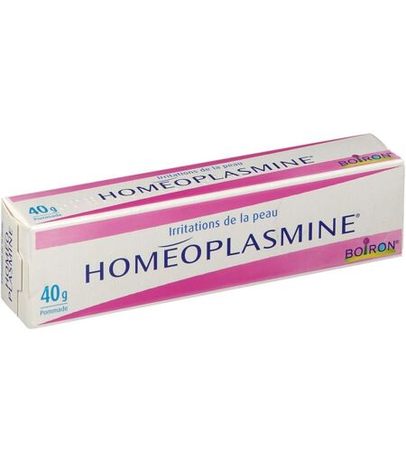 IndicationsIl est utilisé en traitement d’appoint des irritations de la peau.Voie d'administrationcutanée.PosologiePosologieIrritations de la peau : 1 à 3 applications par jour en couche mince.Mode d'administrationVoie cutanée.Si vous avez utilisé plus de HOMEOPLASMINE, pommade que vous n’auriez dûSans objet.Si vous oubliez d’utiliser HOMEOPLASMINE, pommadeSans objet.Si vous arrêtez d’utiliser HOMEOPLASMINE, pommadeSans objet.Composition· Les substances actives sont :Teinture de souci des jardins 0,1 gTeinture de phytolaque 0,3 gTeinture de bryone 0,1 gTeinture de benjoin du Laos 0,1 gAcide borique 4,0 gPour 100 g de pommade· L’autre composant est :Vaseline.Contre-indicationsN’utilisez jamais HOMEOPLASMINE, pommade :· Sur des lésions surinfectées ou suintantes.· Si vous êtes allergique aux substances actives ou à l’un des autres composants contenus dans ce médicament, mentionnés dans la rubrique 6.Précautions d'emploiEn raison de la présence d’acide borique : l’application sur une muqueuse ou sur une peau lésée majore le passage systémique de l’acide borique et, chez l’enfant peut exposer à des effets systémiques toxiques. Ces effets sont d’autant plus à redouter que le topique est utilisé de façon prolongée ou répétée, sur une grande surface, sous occlusion (pansement fermé, couche…), sur une peau lésée (notamment brûlée), sur une muqueuse et chez l’enfant en bas âge.Adressez-vous à votre médecin ou, pharmacien avant d’utiliser Homéoplasmine, pommade.EnfantsHOMEOPLASMINE, pommade ne doit pas être utilisé chez l’enfant de moins de 30 mois.Autres médicaments et HOMEOPLASMINE, pommadeInformez votre médecin ou pharmacien si vous utilisez, avez récemment utilisé ou pourriez utiliser tout autre médicament.HOMEOPLASMINE, pommade avec des aliments, boissons et de l’alcoolSans objet.Grossesse et allaitementCe médicament est déconseillé pendant la grossesse et chez les femmes en âge de procréer n'utilisant pas de contraception efficace. Il convient d'interrompre soit le médicament soit l'allaitement. En cas d'application du médicament sur les seins, si une femme décidait d'allaiter, il faudrait nettoyer la peau avant chaque tétée Chez l'animal, une des substances contenue dans ce médicament a altéré la fertilité. Informez votre médecin si vous planifiez une grossesse ou si vous avez des difficultés à concevoir.Si vous êtes enceinte ou que vous allaitez, si vous pensez être enceinte ou planifiez une grossesse, demandez conseil à votre médecin ou pharmacien avant de prendre tout médicament.Conduite de véhicules et utilisation de machinesSans objet.HOMEOPLASMINE, pommade contientSans objet.PrésentationTube de 40 g ...