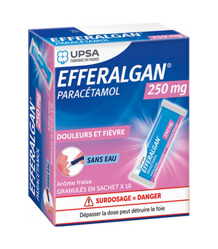 Médicament > Médicaments douleurs et fièvres > Paracétamol > Efferalgan Efferalgan 250 mg Granulés En Sachets Fraise x 10