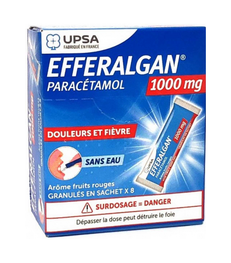 Médicament > Médicaments douleurs et fièvres > Paracétamol Efferalgan Fruits Rouges 1000 mg Granulés en Sachet x 8 - Paracétamol - Pharmacie en ligne LaSante.net