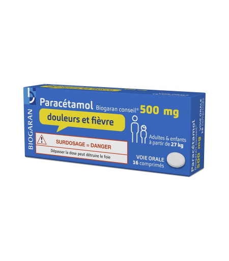 Médicament > Médicaments douleurs et fièvres > Paracétamol Paracétamol Biogaran Conseil 500 mg Comprimés x 16 - Paracétamol - Pharmacie en ligne LaSante.net