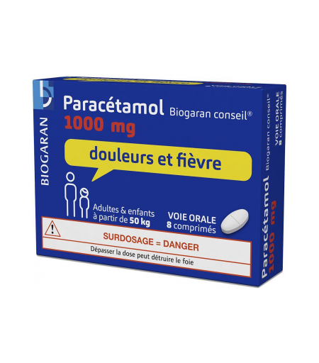Médicament > Médicaments douleurs et fièvres > Paracétamol Paracétamol Biogaran Conseil 1000 mg Comprimés x 8 - Paracétamol - Pharmacie en ligne LaSante.net