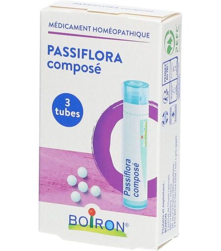 PASSIFLORA composé. Médicament Homéopathique. EH02167 enregistrement sans indications thérapeutique. Conseil d'utilisation Voie orale. Adulte: laisser fondre les granules sous la langue. Enfant : avant 6 ans, dissoudre les granules dans un peu d'eau. Mise en garde spéciale Contient du saccharose et du lactose. Composition: Coffea cruda 5 CH, Ignatia amara 4 CH, Magnesium metallicum 5 CH, Nyckterinia capensis 4 CH, Palladium metallicum 15 CH, Passiflora incarnata 6 DH, Phosphoricum acidum 7 CH, Tellurium metallicum 5 CH. ...