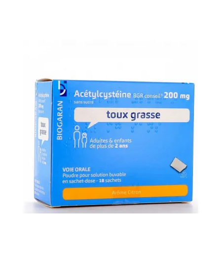 Médicament > Maux de gorge et toux > Médicaments toux Acétylcystéine 200 mg Sans Sucre Biogaran Conseil Sachets x 18 - Toux - Pharmacie en ligne LaSante.net