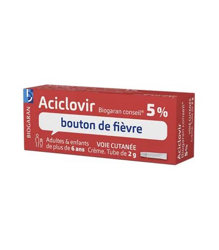 Médicament > Médicaments Dermatologiques > Médicament herpès > Médicament bouton de fièvre Aciclovir Biogaran 5% Crème Tube 2 g