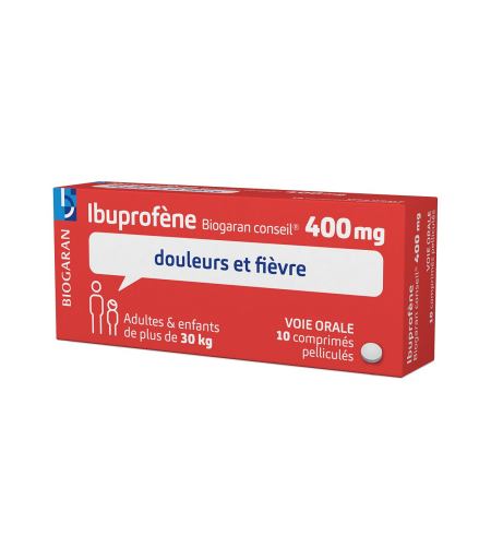 Médicament > Médicaments douleurs et fièvres > Médicaments anti-inflammatoires > Ibuprofène Ibuprofène 400 mg Biogaran Conseil x 10 - Ibuprofène - Pharmacie en ligne LaSante.net