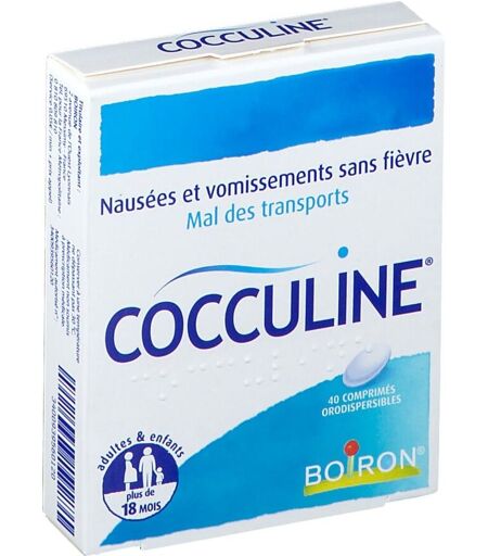 IndicationsCOCCULINE, comprimé orodispersible est un médicament homéopathique traditionnellement utilisé dans le mal des transports.Voie d'administrationsublingualePosologieMédicament réservé à l'adulte et l'enfant de plus de 18 mois.Chez l'adulte:2 comprimés à sucer 3 fois par jour la veille et le jour du voyage.2 comprimés à sucer dès l'apparition des symptômes. Renouveler la prise si nécessaire.Chez l'enfant:1 comprimé à sucer 3 fois par jour la veille et le jour du voyage.1 comprimé à sucer dès l'apparition des symptômes. Renouveler la prise si nécessaire.Cesser les prises dès la disparition des symptômesMode d'administrationVoie sublingualeChez l'enfant de 18 mois à 6 ans, faire dissoudre le comprimé dans un peu d'eau avant la prise en raison du risque de fausse route.CompositionDiversContre-indicationsSans objet.Précautions d'emploiFaites attention avec COCCULINE, comprimé orodispersible:· L'utilisation de ce médicament est déconseillée chez les patients présentant une intolérance au galactose, un déficit en lactase de Lapp ou un syndrome de malabsorption du glucose ou du galactose (maladies héréditaires rares).PrésentationBoîte de 2 Plaquettes thermoformées de 20 Comprimés ...