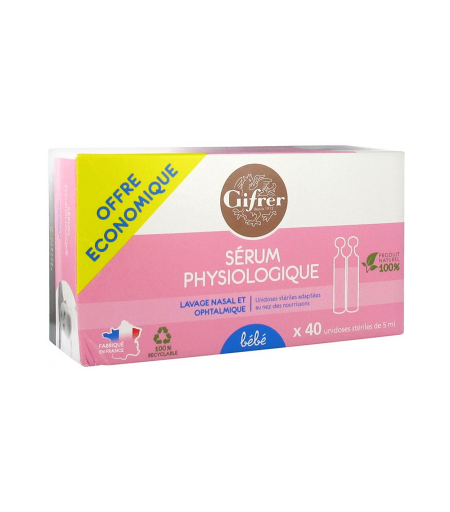 Parapharmacie > Bébé & Maman > Hygiène bébé > Soins Nez et oreilles bébé Gifrer Sérum Physiologique 40 x 5 ml - Nez et oreilles bébé - Pharmacie en ligne LaSante.net