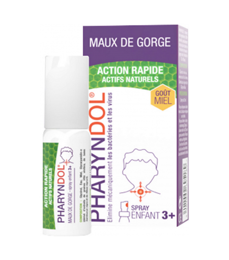 Pharyndol Spray Enfants permet d’enrayer les signes d’infection virale dès les premiers signes de picotements et aide à traiter le mal de gorge déjà installé. Formulé à base d’ingrédients 100% naturels, il contribue à nettoyer la surface de la gorge de tous les contaminants pour favoriser la guérison. Ce spray au goût miel dépose un film protecteur. Il peut être utilisé chez les enfants à partir de 3 ans. ...
