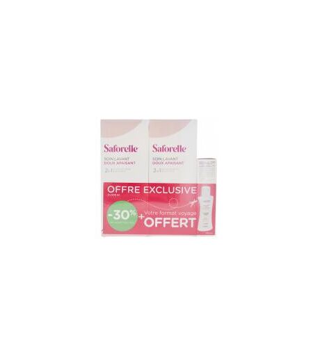 Saforelle Soin Lavant Doux Apaisant Lot de 2 x 500 ml + Format Voyage 100 ml Offert nettoie en douceur et calme irritations et sensations d'inconfort.Spécialement formulé pour les muqueuses et peaux sensibles ou irritées.Son ...