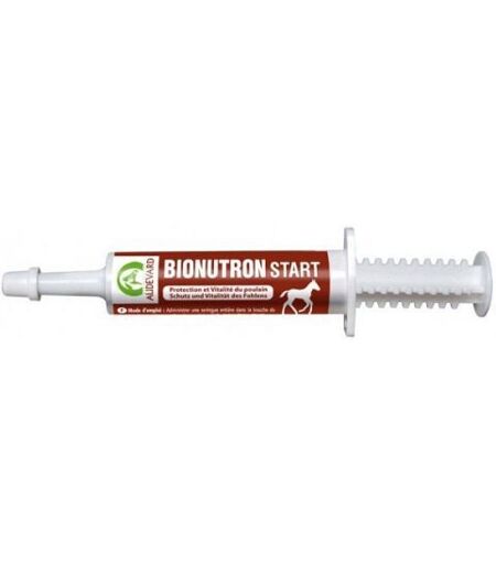 Le poulain nouveau né est fragile. Le développement de ses systèmes digestif et nerveux, de ses os et de ses muscles n?est pas encore achevé. Or, c?est lors de ce développement qu?il faut être vigilant pour ne pas laisser se développer des pathologies. La formule de BONUTRON START a été développée spécialement dans cette optique :Anti-oxydant et Stimulant du système nerveux Les Vitamines C, B1, B2 et B6 protègent les cellules nerveuses naissantes et favorisent l?éveil neurologique et la vivacité du poulain (apprentissage, développement de ses réflexes...). -Protection de la muqueuse digestive Les diarrhés, fréquentes (80% des poulains sont atteints dans les 6 premiers mois de vie) et potentiellement fatales chez le jeune (10% de mortalité) sont à redouter. Les causes en sont multiples : mauvaise vermifugation ou modification de l?alimentation de la mère, stress, déséquilibre de la flore gastrique... L?aspect gélifié et l?huile essentielle de Sauge contenue dans BONUTRON START contribuent à limiter le développement des bactéries dans la muqueuse digestive et limite, par conséquent, le risque de diarrhée.Développement ostéo-articulaire et musculaire La formule de BONUTRON START contient une très forte concentration de vitamines, oligo-éléments, acides aminés et acides gras essentiels, qui contribuent au bon développement de l?appareil locomoteur. Le Cuivre et le Zinc aident à prévenir l?apparition d?AOAJ (Affections Ostéo-Articulaires Juvéniles), tandis que la Vitamine D3 améliore l?assimilation du Calcium. Ceci contribue au développement de structures osseuses résistantes. La Vitamine E et le Sélenium, notamment, contribuent au développement de structures musculaires puissantes. ...