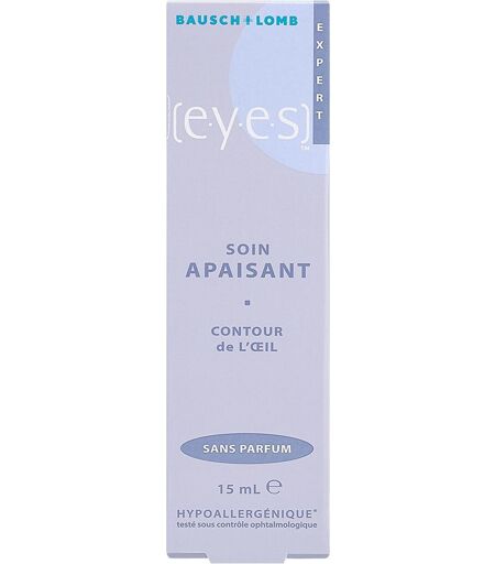 Le soin Apaisant Eyes a été spécifiquement développé pour le contour de l'œil et respecte la sensibilité particulière de cette zone. Formulé avec des extraits de Candeia et de réglisse, ce gel apaisant apporte une sensation de soulagement des rougeurs, tiraillements, et gonfflements despaupières et du contour de l’œil.Après application, la peau paraît plus lisse et plus douce, les marques de fatigue (cernes, gonflement des paupières...) semblent atténuées, pour une sensation de souplesse et d'hydratation améliorée.La garantie Bausch + Lomb :• Yeux sensibles.• Convient aux porteurs delentilles.• Sans colorant, sans parfum.• pH physiologique, proche de celui des larmes.• Gamme hypoallergénique et testée sous contrôle ophtalmologique.Non gras, il pénètre rapidement.IndicationGel apaisant permettant de soulager les rougeurs, tiraillements, et gonflements des paupières et du contour de l'oeil.ApplicationAppliquer 2 à 3 fois par jour de l’intérieur vers l’extérieur du contour de l’œil. Renouveler si nécessaire.IngrédientsAQUA, BUTYLENE GLYCOL, GLYCERIN, ALUMINUM STARCH OCTENYLSUCCINATE, ISODECYL NEOPENTANOATE, PENTYLENE GLYCOL, PHENOXYETHANOL, ACRYLAMIDE/SODIUM ACRYLOYLDIMETHYLTAURATE COPOLYMER, ISOHEXADECANE, TOCOPHERYL ACETATE, TROMETHAMINE, CARBOMER, DIPOTASSIUM GLYCYRRHIZATE, POLYSORBATE 80, SODIUM HYDROXIDE, BISABOLOL, O-CYMEN-5-OL, SODIUM HYALURONATE, TETRASODIUM EDTA, SORBITAN OLEATE, ARNICA MONTANA FLOWER EXTRACT, PLANTAGO LANCEOLATA LEAF EXTRACT, POTASSIUM SORBATE, SODIUM METABISULFITE ...
