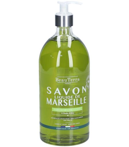 BeauTerra BeauTerra Savon Liquide de Marseille - Menthe Citron 1L 1000 ml