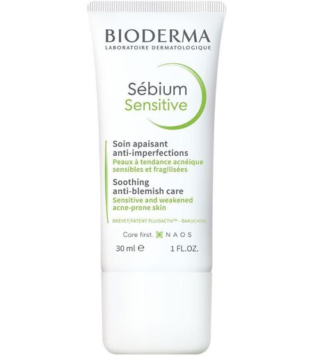 Pour une action durable, Sébium Sensitive est le soin qui agit à l'origine de la sensibilité et des imperfections des peaux à tendance acnéique grâce à la technologie SeboRestore (Brevet Fluidactiv™ - Bakuchiol). Cette technologie rééquilibre la composition du sébum pour qu’il retrouve durablement ses fonctions hydratantes naturelles et empêche la formation de nouvelles imperfections. Sébium Sensitive agit également sur les problématiques déjà installées et permet de retrouver une peau apaisée, plus résistante, confortable et nette. Intégrant le complexe InflaStop, SébiumSensitive apaise les irritations, élimine les boutons enflammés et les rougeurs pour éviter la formation de marques. Il réhydrate la peau pendant plus de 12h grâce à la Glycérine. Des poudres matifiantes associées au Zinc réduisent les brillances pour un résultat immédiat et durable. Indications Apaise, réhydrate & élimine les boutons des peaux sensibles à tendance acnéique. Conseils d'utilisation Appliquer 1 à 2 fois par jour sur une peau nettoyée. En cas de persistance des problèmes, consulter un professionnel de santé. Composition AQUA/WATER/EAU, GLYCERIN, METHYL METHACRYLATE CROSSPOLYMER, DIPROPYLENE GLYCOL, ZINC GLUCONATE, COCO-CAPRYLATE/CAPRATE, VINYL DIMETHICONE/METHICONE SILSESQUIOXANE CROSSPOLYMER, CAPRYLIC/CAPRIC TRIGLYCERIDE, ARACHIDYL ALCOHOL, BEHENYL ALCOHOL, POLYACRYLATE CROSSPOLYMER-6, SODIUM POLYACRYLATE, GLYCYRRHETINIC ACID, PROPYLENE GLYCOL, ARACHIDYL GLUCOSIDE, BAKUCHIOL, LAMINARIA, OCHROLEUCA EXTRACT, MANNITOL, XYLITOL, SODIUM METABISULFITE, RHAMNOSE, GINKGO BILOBA, LEAF EXTRACT, TOCOPHEROL, FRUCTOOLIGOSACCHARIDES, FRAGRANCE (PARFUM). [BI 728] Conditionnement Tube de 30 ml ...