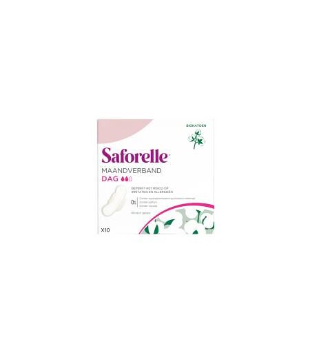 Saforelle Serviettes Hygiéniques Jour Avec Ailettes en Coton Bio 10 Serviettes Hygiéniques - Boîte 10 serviettes