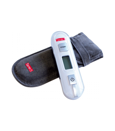 Pour connaître sa température corporelle facilement et rapidement, le thermomètre sans contact Torm mesure la température en 3 secondes au niveau du front.Il s’utilise à tous âge, sur un patient éveillé ou endormi et est précis à +/-0.2°C entre 36°C et 39°C. Pratique et compact, il permet de mesurer la température ambiante, du bain ou des biberons et il est facile à transporter grâce à sa pochette de rangement fournie. ...