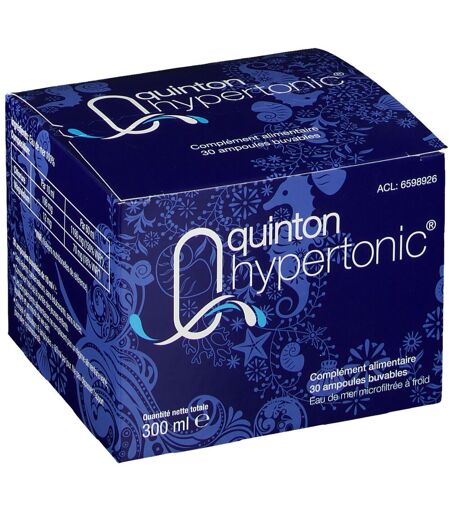 Complément alimentaire à utiliser dans le cadre d’une alimentation variée, équilibrée et d’un mode de vie sain.Biolife Quinton Hypertonic 10 mlPlasma marin microfiltré à froid : Favorise l'équilibre électrolytique et le fonctionnement normal du métabolisme énergétique Diminue la fatigue et contribue au bon fonctionnement du système nerveux et de la fonction psychologique. Joue un rôle dans la synthèse protéinique et pour le bon fonctionnement des muscles tout comme à l'entretien des os et des dents Participe au processus de division cellulaire Apporte de façon conséquente des sels bio-disponibles, minéraux, oligoéléments et autres éléments naturels. Agit comme la résultante de l'action de chacun de ses éléments en synergie (TOTUM) Contribue à la santé organique par le biais d'une rénovation cellulaire et d'une nutrition cellulaire complète Maintient l'équilibre hydrominéral des cellules Est efficace dans les domaines de la dermatologie, allergologie, gastro-entérologie, odontologie, pédiatrie, gynécologie, médecine du sport, ophtalmologie, physiothérapie respiratoire, rhumatologie, endocrinologie, etc. IngrédientsEau de mer 100%. Plasma marin microfiltré à froid contenant le totum ionominéral dont : Magnésium 11,67 mg Chlorure 0,198 mgConseils d'utilisation1-3 ampoules/jour, le matin et à midiPrécautions d'emploi Pas d’usage prolongé sans avis médical Respecter les doses journalières conseillées Conserver au sec et à l’abri du soleil Poids net30 ampoulesFabricantBio-Life laboratory srl/bv Parc Scientifique Crealys, rue Camille Hubert 33 5032 Isnes Belgique ...