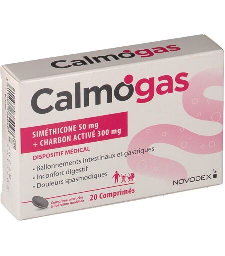 Calmogas comprimé est un dispositif médical indiqué dans le traitement symptomatique des états dyspeptiques: ballonnements gastriques (aérophagie) ou intestinaux (météorisme), liés à un excès d'air dans le système digestif. Il soulage les douleurs spasmodiques, et prévient l'apparition de manifestations gênantes telles que les éructations ou les flatulences. Conseils d'utilisation4 comprimés par jour, de préférence 2 comprimés après les 2 repas principaux, à avaler avec un verre d'eau. Conditionnement20 Tablets ...