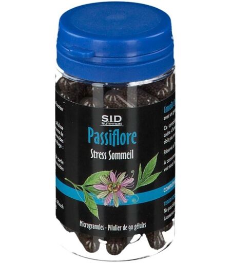 Complément alimentaire à utiliser dans le cadre d’une alimentation variée, équilibrée et d’un mode de vie sain.Passiflore de SID Nutrition est un complément alimentaire traditionnellement utilisé pour favoriser le sommeil et la relaxation.Composition:Supports : cellulose microcristalline, xylitol ; extrait de partie aérienne de passiflore "Passiflora incarnata" titré en flavonoïdes totaux exprimés en vitexine ; agents d'enrobage : povidone, gomme laque ; gélule : gélatine.Valeurs nutritionnelles: Par gélulePassiflore (partie aérienne)375 mgConseil d'utilisation:1 à 2 gélules par jour à avaler avec un grand verre d'eau en dehors des repas.Précautions d'emploi:Ne pas dépasser la dose journalière indiquée. Tenir hors de portée des jeunes enfants. Réservé à l’adulte et à l’enfant de plus de 12 ans. A conserver à l'abri de la lumière, de la chaleur et de l'humidité.Poids net:38,45 g = Pilulier de 90 gélules de microgranulesFabricant:S.I.D NutritionAvenue de Provence13 190 AllauchFrance ...
