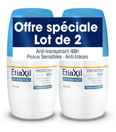 ETIAXIL - Déodorant Anti-transpirant Traitement Transpiration Modérée Aisselles Protection 48h Roll on Fabriqué en France 50 ml Lot de 2 Rouleau 100