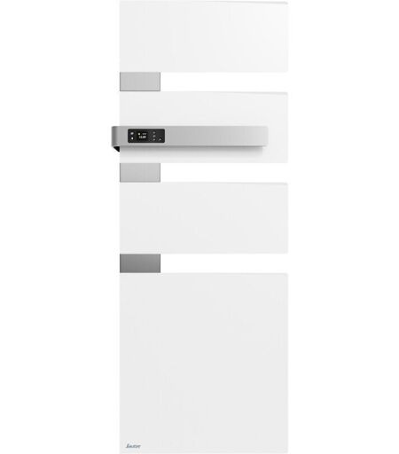 Avec son design ultra moderne, le radiateur sèche-serviettes ALUTU de chez Sauter offre une plus large surface de séchage que les sèche-serviettes traditionnels. Sa couleur blanche fait de celui-ci l'élément idéal pour les salles de bain au look minimaliste et à la décoration lumineuse. Son asymétrie permet d'y déposer un maximum de serviettes. Vous avez le choix entre le mât à droite ou à gauche, afin que l'accès aux serviettes soit facile, peu importe la conception de votre salle de bain. Connecté, vous pouvez gérer le chauffage de votre salle de bain et le séchage de vos serviettes à distance, depuis l'application gratuite et intuitive CozyTouch® pour smartphone. Ainsi, déclenchez votre radiateur depuis votre lieu de vacances, afin que votre salle de bain soit à température idéale à votre retour. Équipé d'un boitier tactile de réglages, il affiche également l'heure et la météo. Grâce à sa technologie brevetée 3CS®, le radiateur sèche-serviettes ALUTU chauffe et sèche vos serviettes simultanément, peu importe la quanti-té de serviettes posées dessus. Également doté d'une fonction BOOST, vous ne craindrez plus les chutes brutales de température. Celle-ci vous permettra de chauffer votre pièce en seulement 15 minutes. Enfin, vous pouvez dissocier sa fonction de radiateur chauffage et sa fonction de sèche-serviettes, afin que vous puissiez sécher vos serviettes même en été. Un avantage non négligeable, notamment si votre salle de bain est très humide. Caractéristiques techniques : Nom du produit : radiateur sèche-serviettes électrique soufflant Modèle : ALUTU 1750W Marque : Sauter Type de produit : à inertie fluide Fonction souffleur : oui Format sèche-serviettes : mât à droite Surface de chauffage : 5 à 10m² Puissance (en W) : 1750 Dimensions (l x H x P) : 58 x 150 x 18.5cm Poids : 33kg ...