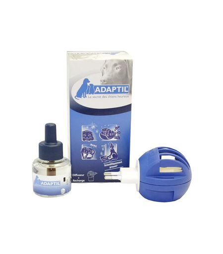 Le stress est un véritable fléau pour le chien. C'est d'autant plus vrai pour ceux qui passent des journées seuls chez eux pendant que leurs maîtres travaillent. La solitude et l'absence de marques d'affection sur de longues périodes sont stressantes pour eux. Dans ce type de situation, il n'est pas rare que l'animal fasse des dégâts dans la maison. L'ensemble est donc vraiment difficile à vitre, pour tout le monde ! Avec Adaptil, vous allez revivre. Ce système conçu par le laboratoire Ceva apaise et calme le chien. C'est l'apaisine canine, ou phéromone apaisante, qui est diffusée dans l'atmosphère. Cette substance de synthèse correspond à une phéromone émise par la mère juste après la mise bas de ces chiots, pour rassurer ces derniers. Le système est très simple d'utilisation, il vous suffit de visser le diffuseur sur la recharge Adaptil, et de brancher l'ensemble sur une prise électrique. Avec 48 ml de produit, vous avez une autonomie d'environ 4 semaines. L'apaisine agit sur une surface de 50 à 70 mètres carrés. Branchez le diffuseur là où votre compagnon à 4 pattes passe l'essentiel de son temps. Ce produit ne doit pas être utilisé avec un chien présentant un comportement agressif ou hyperactif. Pour contrôler la peur et l'angoisse de votre chien, Adaptil est le système idéal. Votre boule de poils sera plus sereine, et vous aussi ! ...