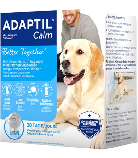 Le diffuseur ADAPTIL® Calm instaure un climat de bien-être pour votre chien. Ce kit de démarrage se compose d'un diffuseur et d'une recharge. La chienne émet une substance naturelle pour communiquer avec ses chiots et instaurer un climat de... ...