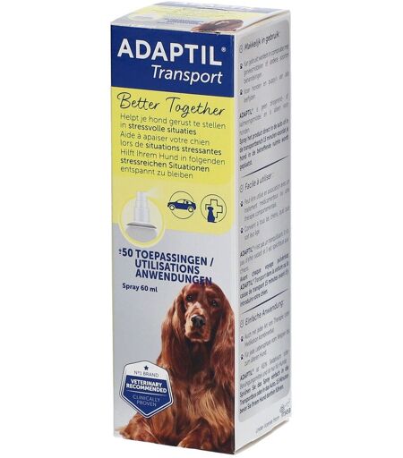 Adaptil™ est un spray diffuseur d'analogue synthétique de phéromones apaisantes (DAP) pour chiens.Il a été scientifiquement prouvé qu'Adaptil™ aide non seulement les chiots, mais aussi les chiens de tous les âges pour :favoriser l’apprentissage durant la période d’apprentissage et de socialisationles aider à s’adapter à leurs nouveaux foyersles aider à s’adapter à des situations difficiles telles que rester seul à la maison, les feux d’artifice, la visite chez le vétérinaire, le transport en voiture, les pleurs la nuit, un nouveau bébé...IndicationsChiens stressésConseils d'utilisationVaporisez 8 à 10 jets d’ADAPTIL 15 minutes avant les effets attendus et avant que le chien ne pénètre dans l’environnement (voiture, cage de transport, chenil, etc.). Les effets devraient durer environ 4 à 5 heures bien que chaque animal réagisse différemment. Renouvelez l’application après ce délai ou si vous constatez une diminution de l’effet.Le ADAPTIL Spray ne doit pas être vaporisé directement sur l’animal ou sur la gueule de l’animal.CompositionAnalgoue synthétique de phéromones apaisantes (DAP) canines (2%), Excipient (100 g)Il est indispensable de demander l’avis de votre vétérinaire ou de votre pharmacien. Si les symptômes persistent, consultez votre vétérinaire. ...
