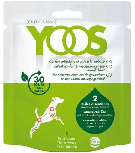 Le collier Yoos favorise le confort articulaire et aide à la mobilité chez le chien. Il convient pour les chiens ayant des gênes articulaires ou des troubles de la mobilité. Yoos apporte une vraie réponse naturelle au traitement de la douleur associée à l'arthrose, surtout en première intention et en accompagnement des compléments alimentaires protecteurs du cartilage. Attention : le collier Yoos est déconseillé aux chats. Le collier Yoos existe en 2 tailles : S : pour les chiens de moins de 10 kilos M/L : pour les chiens entre 10 et 50 kilos (tour de cou inférieur à 62,5 centimètres) Pour un chien plus tonique, plus mobile et plus joyeux ! Vidéo : le collier Yoos améliore le confort articulaire du chien ...