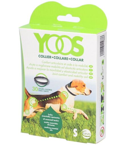 Collier Ceva® YOOS taille S - confort articulaire pour les petits chiensLe collier Ceva® YOOS taille S a été spécialement conçu pour les petits chiens pesant moins de 10 kg. Il est imprégné d'une combinaison unique d'huiles essentielles telles que l'huile de gaulthérie et l'huile de romarin, connues pour leurs propriétés apaisantes. Le collier favorise de manière naturelle le confort articulaire et la mobilité. Les premiers effets positifs apparaissent déjà après 3 jours. Il peut être utilisé en complément de chondroprotecteurs ou d'aliments diététiques. L'intensité du parfum diminue après quelques jours. Pour un effet continu, il est recommandé de renouveler le collier tous les mois.Application:Sortir le collier de son emballage et le mettre autour du chien. Ajuster la taille et laisser porter le collier en permanence (sauf pendant le lavage). Utiliser un nouveau collier chaque mois. ...