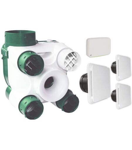 Kit VMC avec centrale VMC + 3 bouches d'extraction. VMC avec sonde de qualité d'air intérieur + sonde thermo-hygrométrique Produit de haute qualité, colisage soigné, expédié depuis la france. ...