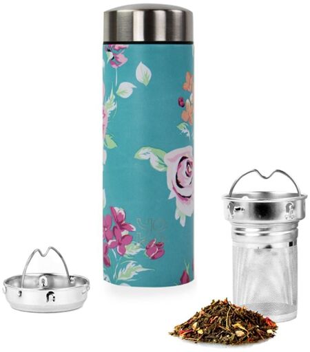 Cette théière isotherme de 350 ml au style vintage et romantique garde votre thé, infusion ou préparation détox 5 heures au chaud et 7 heures au froid !Étanche et ergonomique, elle est la solution idéale pour emporter votre boisson dans tous vos déplacements.2 filtres sont inclus : 1 filtre long de type panier pour une infusion temporaire et 1 filtre court pour une infusion permanente.Elle s¿ouvre et se ferme aisément grâce à son bouchon qui se dévisse. Lavage à la main. ...