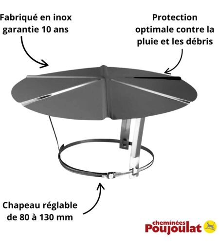 Poujoulat - Chapeau chinois Inox réglable de 80 à 130 mm