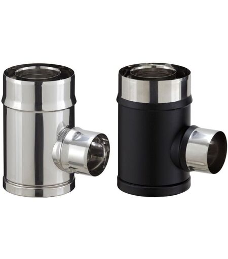Poujoulat - Té de branchement inox pour poêle à granulés - pgi pour poêles à Pellets - Diamètre 80/130 - Finition : Noir mat (piquage simple paroi)