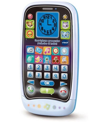 Version espagnole. Smartphone éducatif, jouet pour enfants + 2 ans. Applications : smartphone avec applications qui imitent des activités de la vie réelle comme la méditation, l'exercice physique ou la pratique de la photographie entre les personnages du téléphone. JEUX D'APPRENTISSAGE : Apprenez les heures à travers un personnage sympathique. Le smartphone se compose de jeux amusants à travers l'interaction avec quatre animaux qui simulent des conversations entre eux, prennent des photos, pratiquent des courses d'obstacles, grimpent sur des arbres... et tout pour développer la coordination il-main, compter, logique et bien plus encore. Nous allons parler ! Voix pour discuter avec votre ami le singe. Écran LCD : smartphone interactif pour préscolaire avec écran LCD images, lumières et voix. PERSONNALISEZ : personnalisez votre téléphone en choisissant la tonalité, le contraste et la musique de fond. Parents sûrs, parents VTECH - Sécurité et éducation : nous développons des jouets éducatifs et interactifs pour que les plus petits apprennent tout en s'amusant et en jouant en toute sécurité. ASPECTS ÉDUCATIFS : développement du langage, mathématiques de base, jeu indépendant et stimulation auditive. VTECH SOIN DE LA PLANÈTE : chez VTech, nous travaillons à réduire notre impact environnemental, dans le cadre d'une approche éco-responsable. Référence fabricant : 3480-529222. Matériau : Plastique. ASIN : B0BQYJVHMG. Dimensions de l'article L x l x H : 9,2 x 13,4 x 4,8 centimètres. Âge recommandé par le fabricant : 24 mois et plus. Matière principale : Plastique. Couleur : Bleu. Marque : VTech. Batterie(s) / Pile(s) requise(s) : Oui. Code UNSPSC : null. Pays d'origine : . Nombre de joueurs : 1. Dimensions du produit (L x l x h) : 9,2 x ...