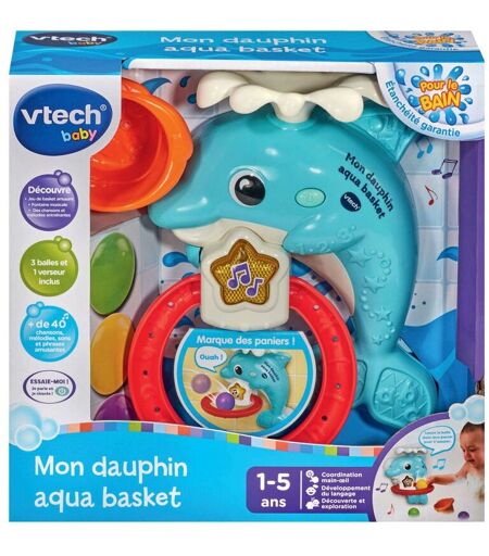 Le Jouet pour le Bain Mon Dauphin Aqua-Basket de VTECH BABY Découvrez le jouet pour le bain Mon dauphin aqua-basket de VTECH BABY. Ce jouet amusant permet aux tout-petits de s'initier au basket tout en explorant l'univers marin. Facilité d'utilisation Fixez-le facilement sur les parois de la baignoire grâce à ses ventouses. Fonctionnalités musicales Appuyez sur le bouton Musique lumineux pour déclencher : Des chansons Des mélodies Des sons Des phrases amusantes ...